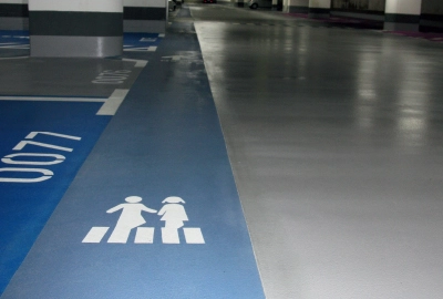 Para a proteção da superfície de parques de estacionamento abertos, os regulamentos recomendam o sistema OS 11. Por definição, estes sistemas envolvem revestimentos para áreas sujeitas a tráfego com, no mínimo, aumento da formação dinâmica de fissuras de 0,3 mm. A experiência demonstrou, no entanto, que os primeiros sinais de desgaste podem ser observados após um curto período de serviço, especialmente em áreas sujeitas a altos esforços mecânicos, como curvas, rampas ou hélices. O sistema rígido OS 8 MC-DUR 1252 é, portanto, o mais adequado e é aplicável a quase todas as áreas do estacionamento. A alta resistência ao desgaste deste sistema não foi apenas comprovada em testes de trafego, mas firmemente estabelecida sob condições práticas de serviço. A impermeabilidade do MC-DUR 1252 também garante proteção duradoura da estrutura de betão armado.