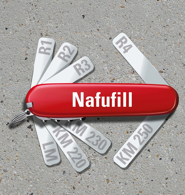 Com Nafufill LM [R1], Nafufill KM 220 [R2], Nafufill KM 230 [R3] e Nafufill KM 250 [R4], tem ao seu dispor quatro argamassas de substituição de alto desempenho que satisfazem os requisitos especificados na EN 1504 Parte 3. Eles também oferecem um amplo espectro de desempenho, permitindo que eles sejam usados ​​para aplicações muito além daquelas que estão padronizadas